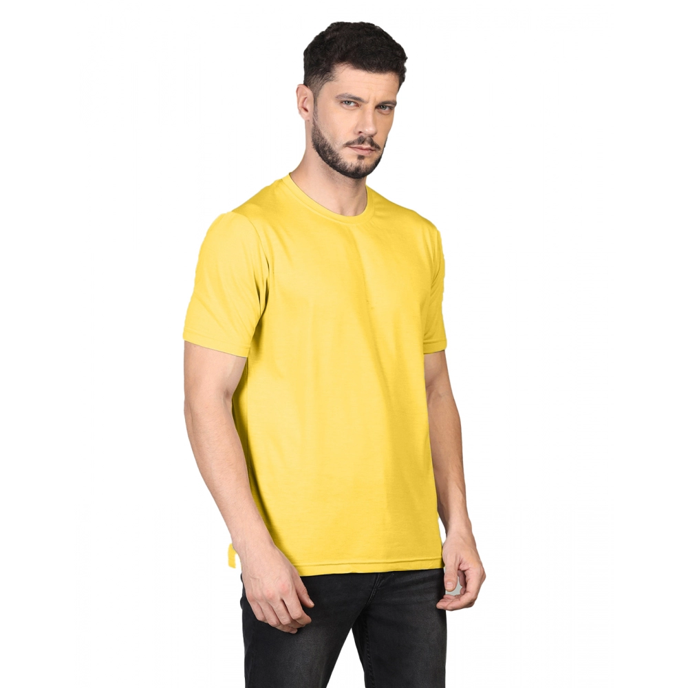 Men’s Casual Half Sleeve Solid Cotton Blended Round Neck T-shirt (Yellow)